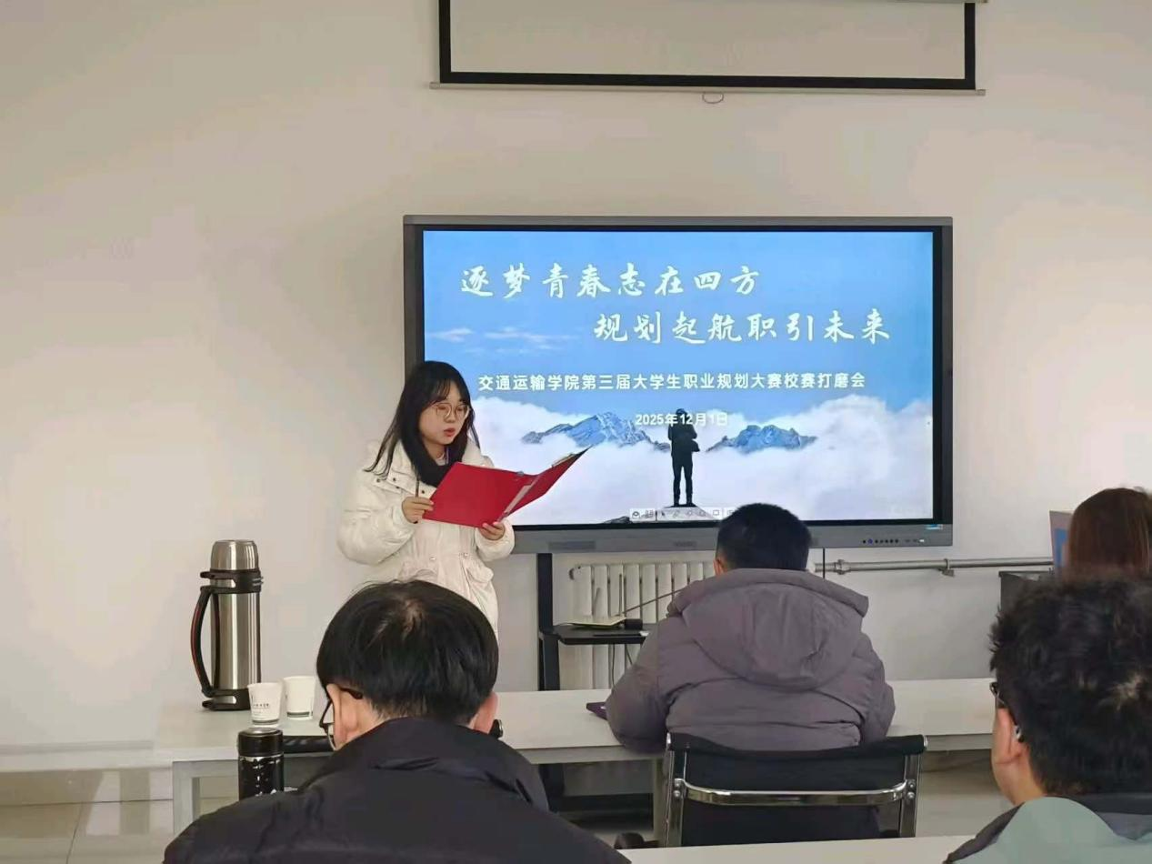 为助力晋级选手优化作品、提升赛事竞争力,12月1日下午,交通运输学院组织开展了第三届大学生职业规划大赛校赛专项打磨会,特邀宝鸡文理学院朱丽叶老师、鲸彩拾影传媒朱蓓蓓老师担任指导嘉宾,学院党支部书记王枢参会,学院晋级后续赛事的6位优秀选手及指导教师参与本次活动。