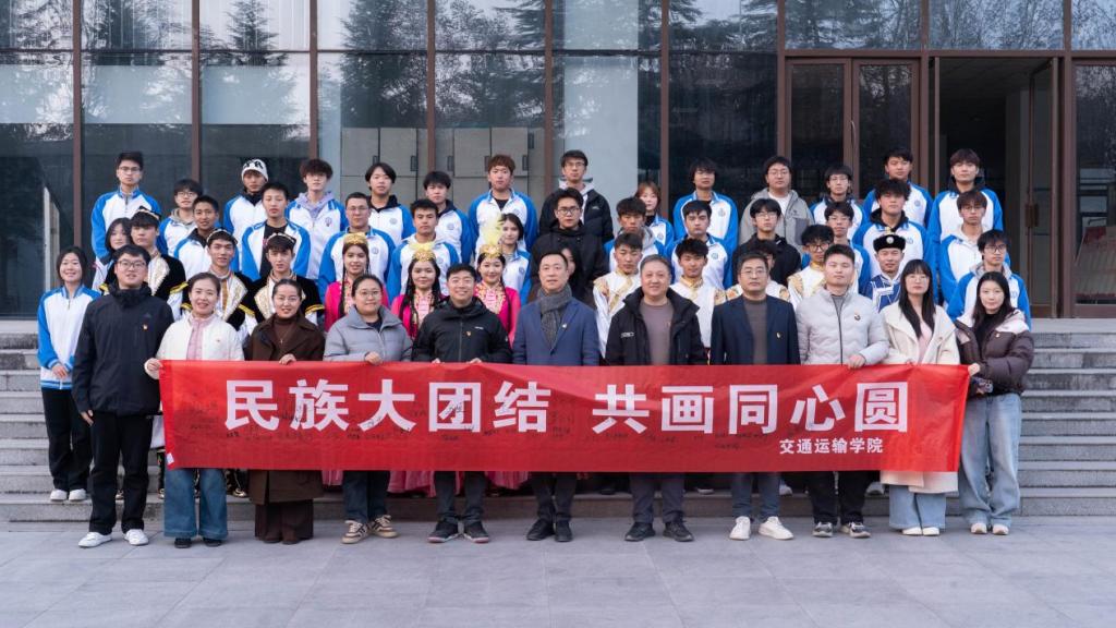 活动最后,全体参会人员在汽车机电大楼前合影留念。此次座谈会不仅为少数民族同学搭建了交流展示的平台,更筑牢了各民族师生团结互助的根基,推动交通运输学院民族团结工作走深走实,让青春在共筑中国梦的征程中绽放光彩。