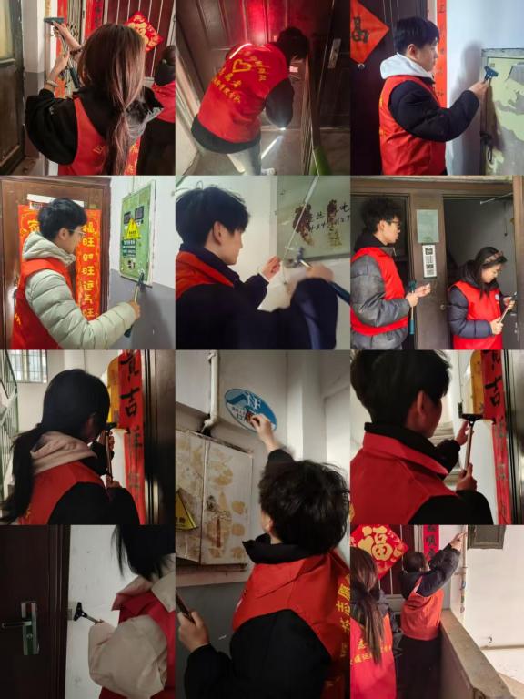 第二组团员则聚焦社区 “顽疾”—— 楼道及居民门口的小广告。团员们携带铲刀、喷壶等工具,逐栋楼、逐单元进行清理。从一楼到顶楼,团员们逐层推进,不放过任何一处违规张贴的广告。经过不懈努力,社区楼道恢复了整洁,非法小广告得到有效遏制,既改善了居民居住环境,也消除了潜在安全隐患,进一步提升了社区整体形象。