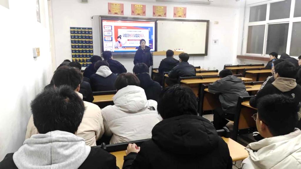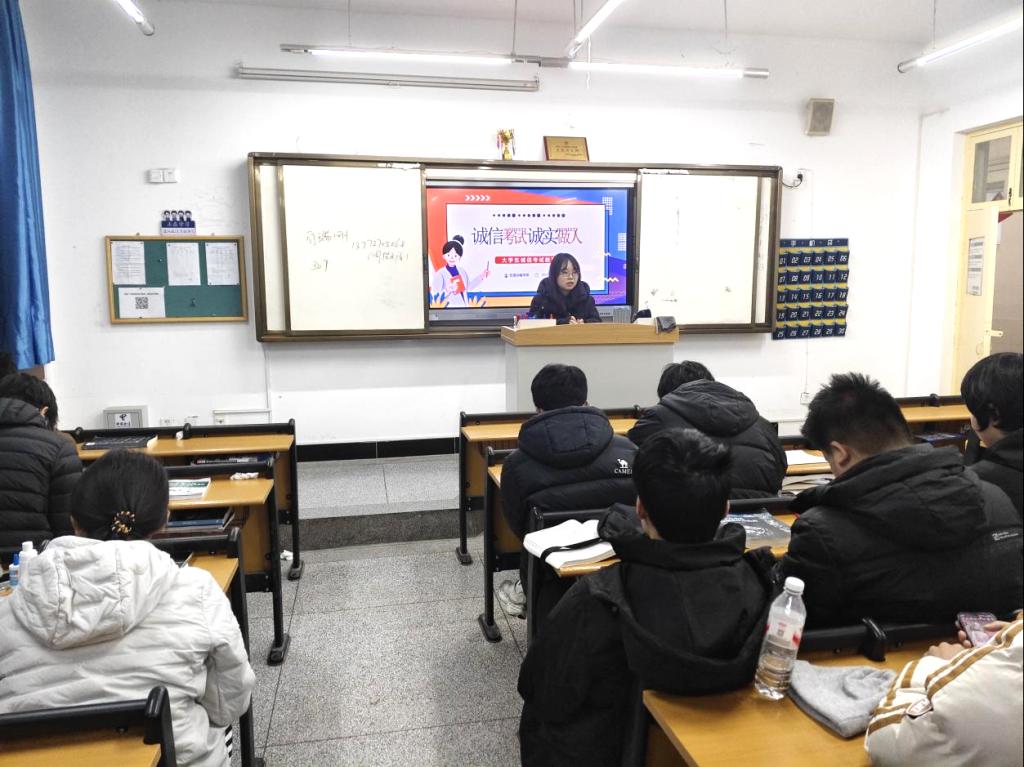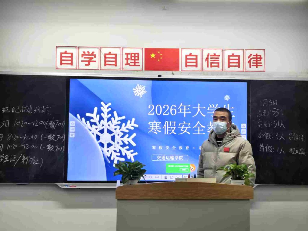 为进一步强化学生考风考纪意识,夯实诚信立身根基,同时筑牢假期安全防护屏障,保障学生度过平安有序、充实有意义的寒假,1月3日晚自习,交通运输学院组织全体学生召开诚信考试暨寒假安全教育主题班会。各班班主任围绕两大核心主题,进行系统讲解与全面部署,为学生送上“考前规范+假期保障”的双重指导。